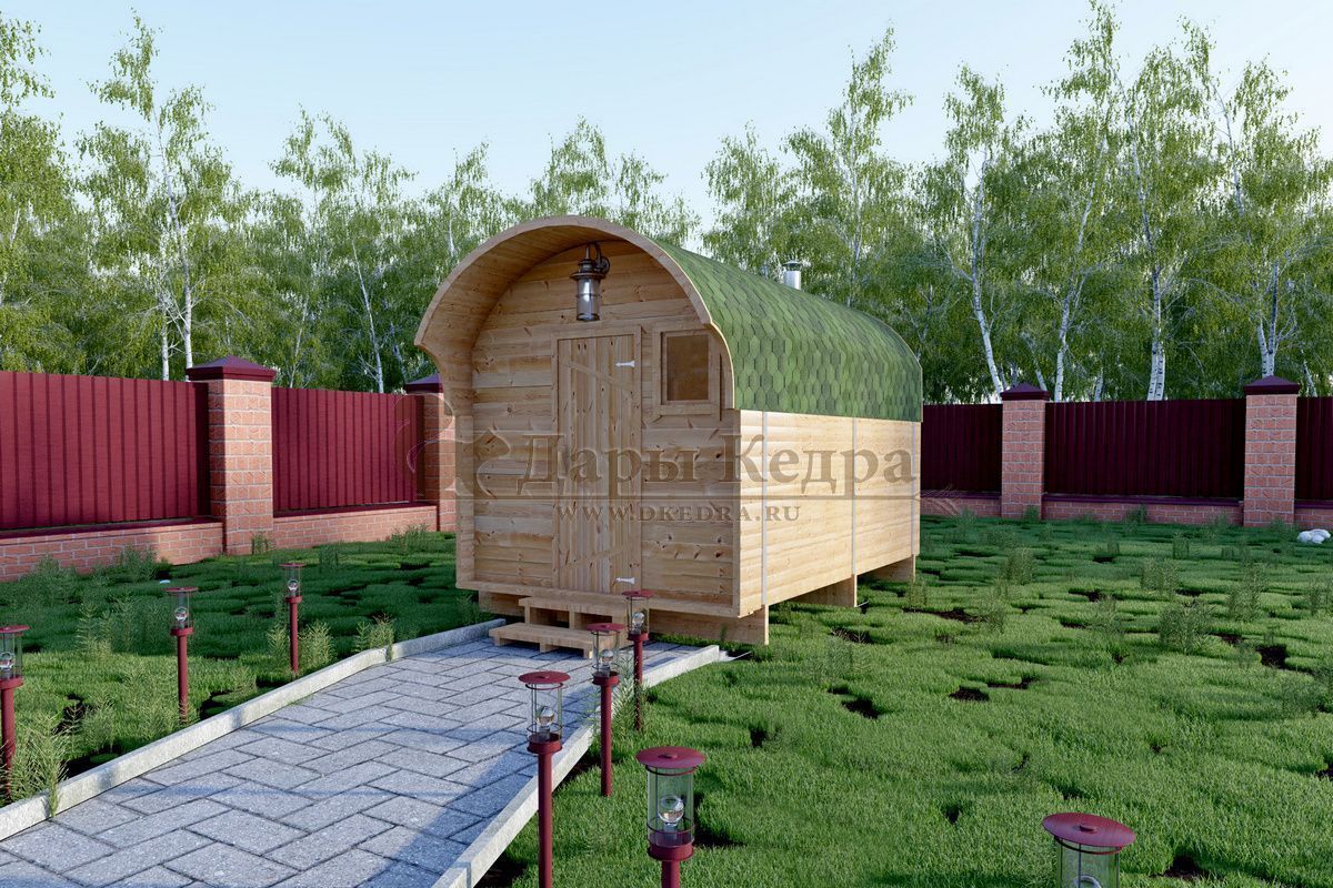 Одним из самых популярных вариантов предлагаемых конструкций модульных бань являются бани-бочки буханки. Свое название они получили благодаря тому, что их форма визуально напоминает буханку формованного хлеба, а именно, прямоугольный корпус с полукруглой кровлей. Эта концепция обеспечивает эффективное использование занимаемого пространства, обеспечивает стильный дизайн объекта.