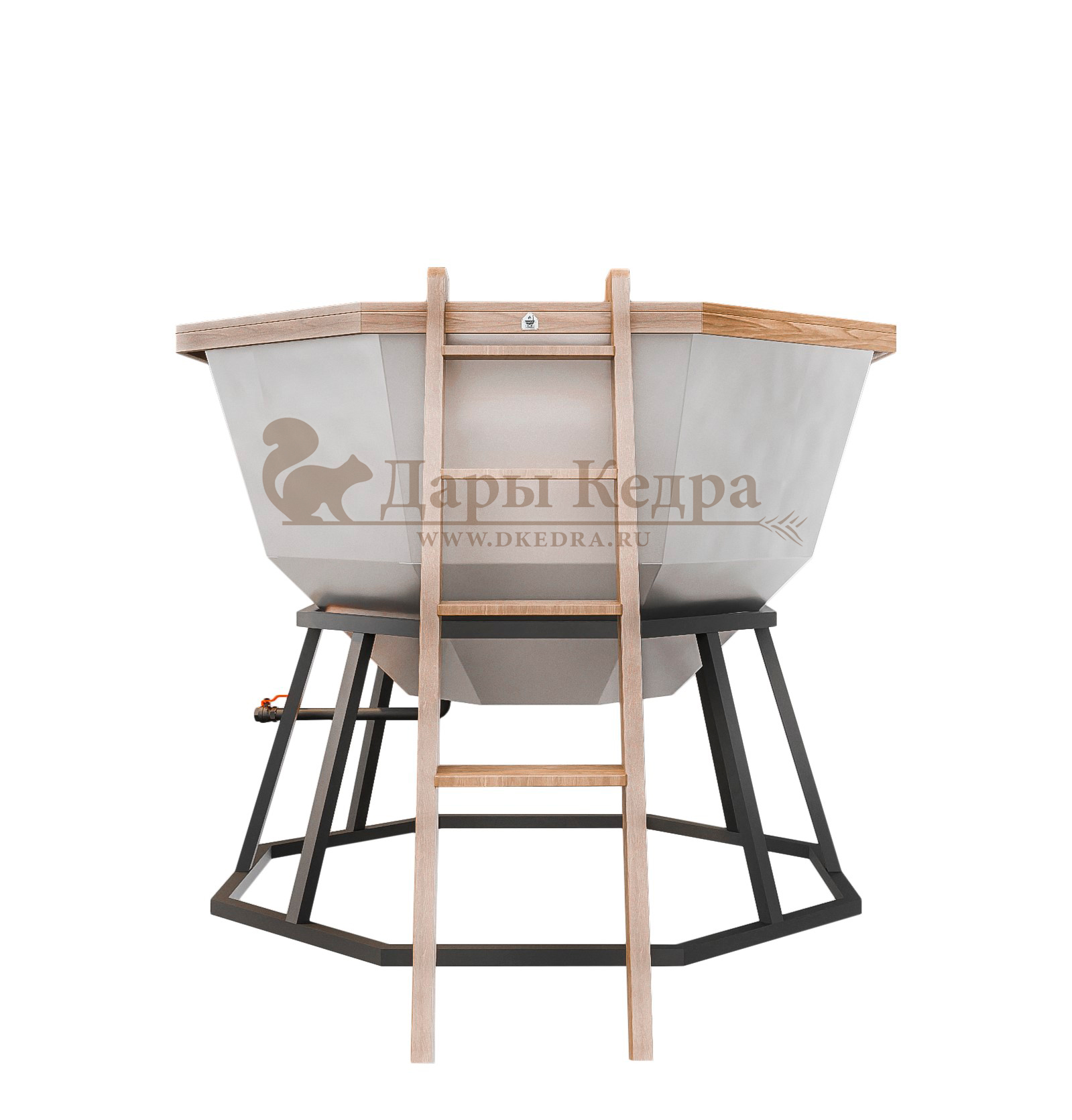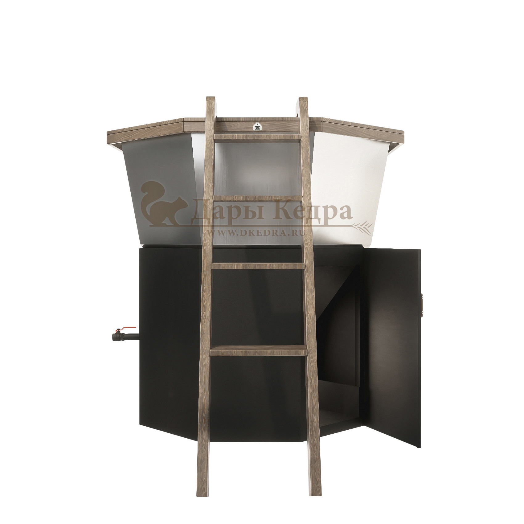 Конструкция устанавливается на прочную подставку, обеспечивающую устойчивость. Для удобства предусмотрена лестница, ведущая внутрь чана. Внутри оборудованы удобные сиденья, позволяющие комфортно расположиться. В зависимости от модели, вместимость составляет от 5 до 10 человек — отличный вариант для семьи или компании.