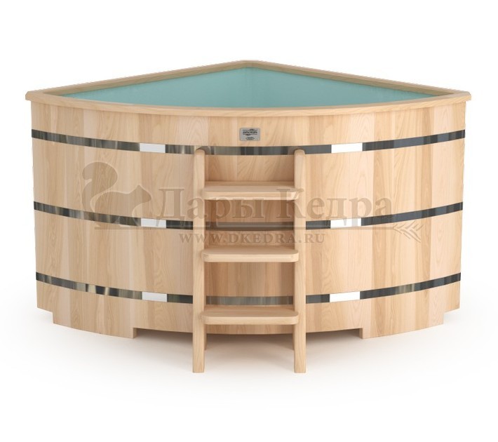 Бондарная угловая купель из кедра с пластиковой вставкой