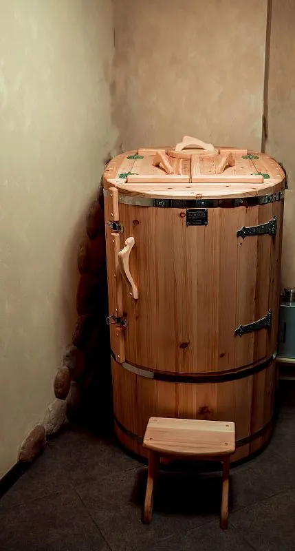 Финская сауна, купель и душевая кабина из кедра в центре здоровья и красоты «Релакс» (г. Новосибирск)